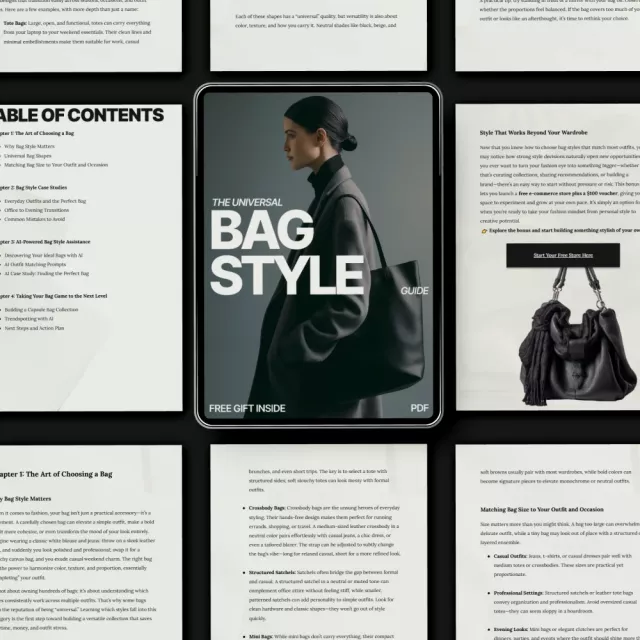 Unlike other style guides that focus only on theory, this guide offers practical case studies and AI-powered bag style assistance to help you match the perfect bag with your outfits effortlessly. You’ll learn not just what bag styles match most outfits, but how to incorporate them into your daily life with ease. The addition of AI technology makes it stand out by giving you tailored recommendations based on your unique style preferences.