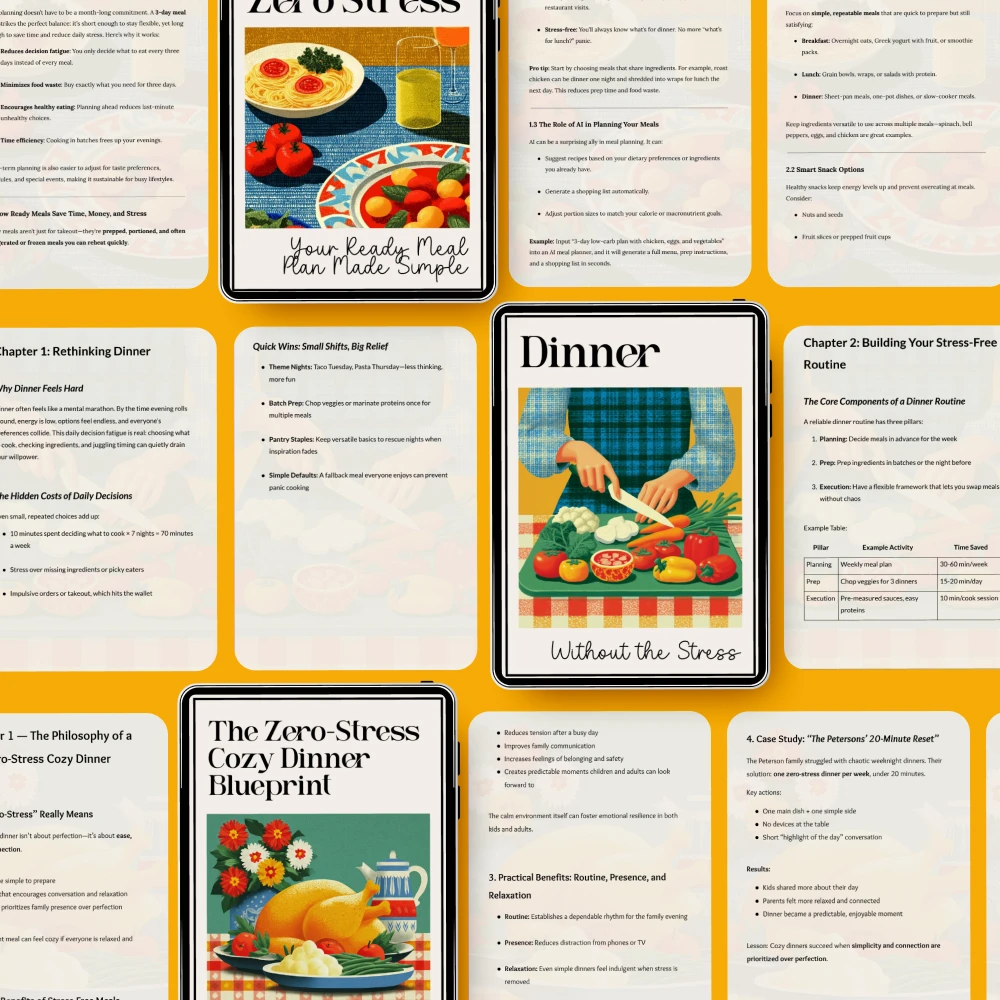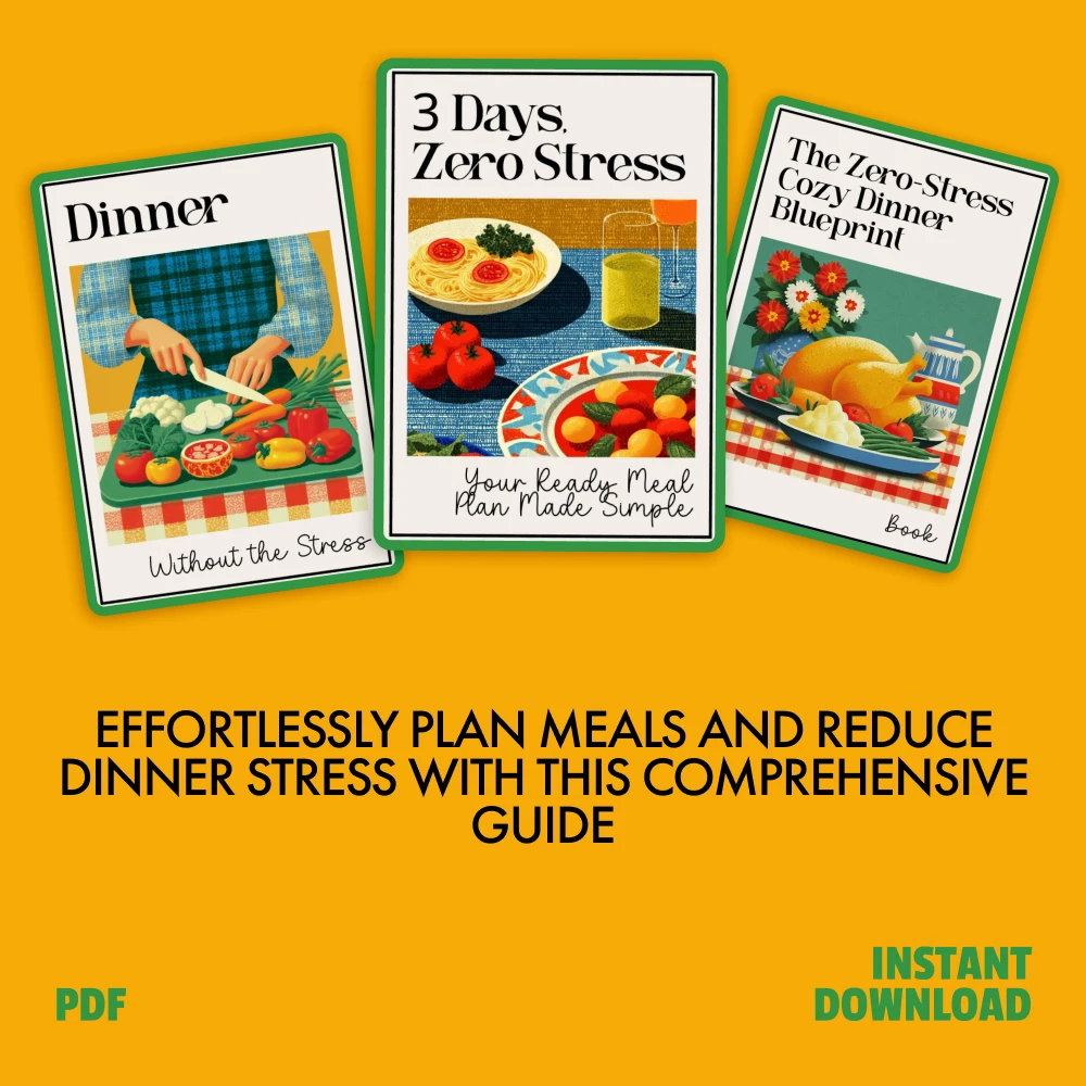 • The Zero-Stress Cozy Dinner Blueprint: A blueprint designed to help you create cozy, comforting meals in no time – no stress, just delicious, easy-to-make dishes.