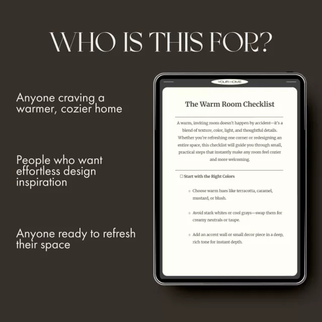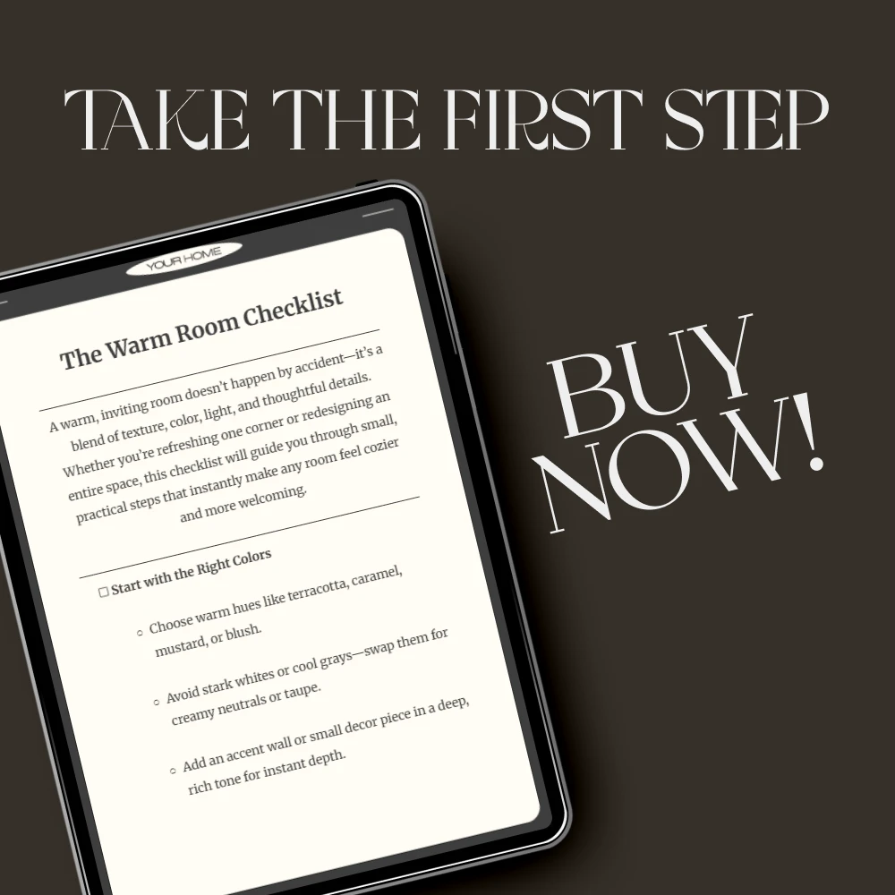 With The Warm Room Checklist, you’ll learn the small changes that make the biggest difference—how to combine colors, textures, and lighting to create a room that radiates comfort. Download your copy today and start transforming your space into the warm, inviting retreat you’ve always dreamed of.