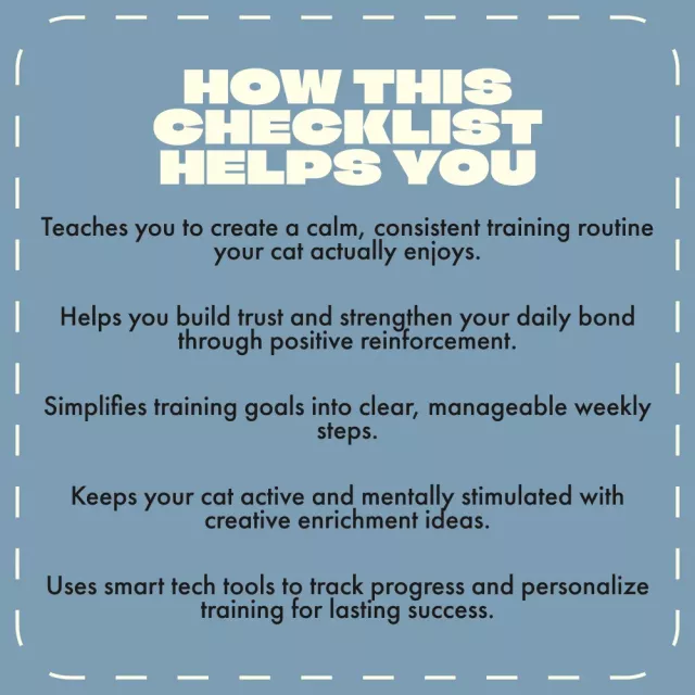 Make every week count in your cat’s development journey. Download The Weekly Cat Training Routine Checklist today and begin building the bond, trust, and behavior you’ve always wanted — one paw at a time!