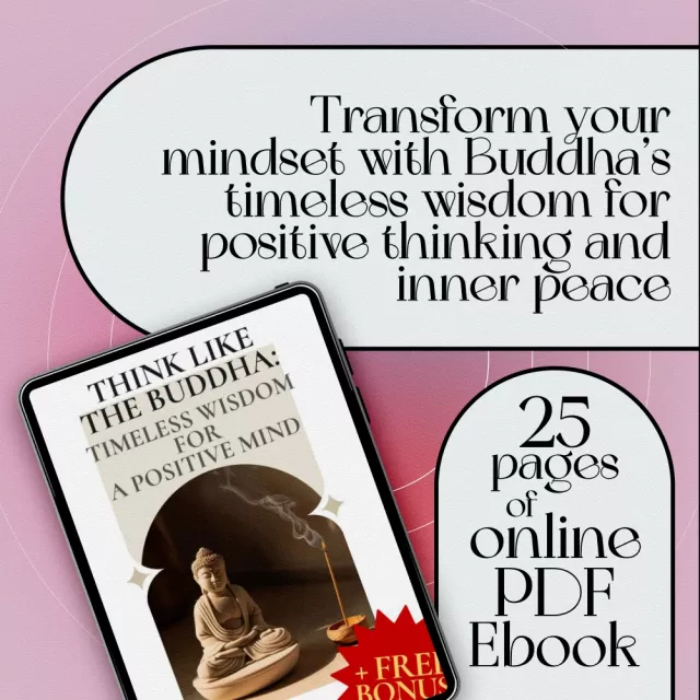 Step into a calmer, more joyful mindset with Think Like the Buddha: Timeless Wisdom for a Positive Mind, a beautifully crafted digital eBook that guides you through some of the most powerful Buddha quotes on positive thinking. Whether you’re navigating stress, seeking clarity, or striving to cultivate a more compassionate mindset, this guide blends timeless Buddhist teachings with practical, modern applications to help you shift your thinking and elevate your everyday life.