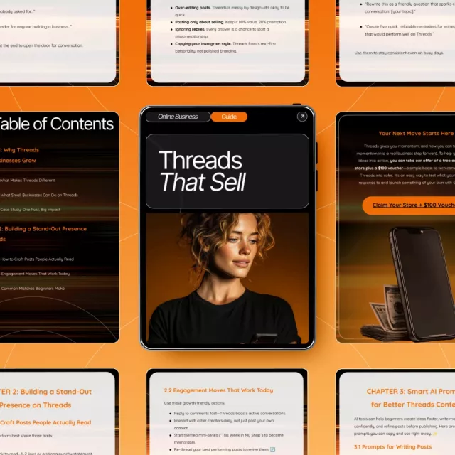 • Chapter 1: Why Threads Helps Businesses Grow – What makes Threads unique, how small businesses can win, and a case study showing big impact from one simple post.
