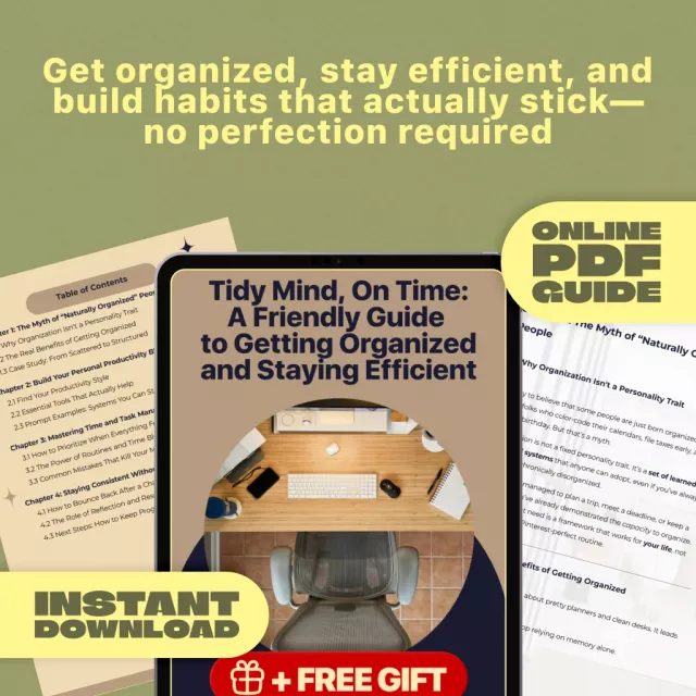 Feeling scattered, always behind, and tired of juggling priorities that never seem to stay put? Tidy Mind, On Time is your practical, friendly roadmap to building an organized life that actually works for you. Whether you’re trying to get your mornings under control, keep track of your goals, or simply stop forgetting everything, this digital guide offers more than tips—it offers transformation.