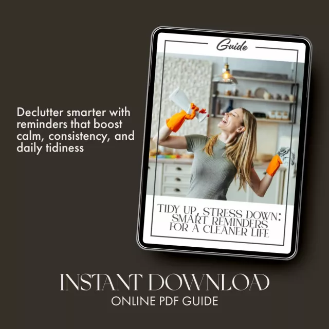 Tidy Up, Stress Down: Smart Reminders for a Cleaner Life | Digital Guide for Home Organization, How to Schedule Tidy Up Reminders, Declutter Checklist & Productivity eBook