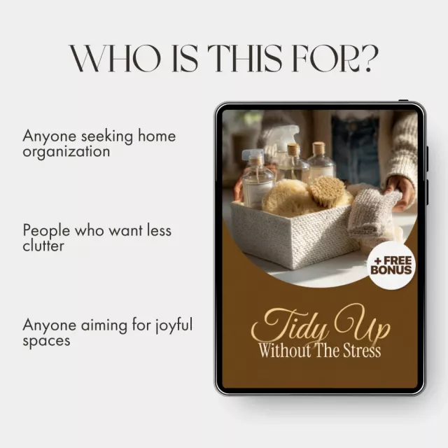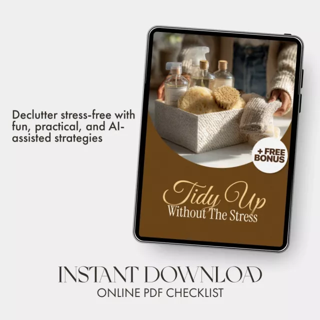 With a mix of creative strategies and practical exercises, this downloadable resource is perfect for anyone who wants to declutter without feeling overwhelmed. From gamifying your clean-up sessions to reframing your perspective and even leveraging AI, it’s packed with tips to make tidying satisfying and rewarding.
