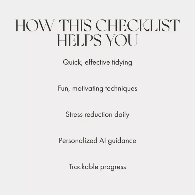 Transform your home and your mindset with Tidy Up Without the Stress, a unique digital checklist designed to show you how to make decluttering fun. This isn’t just another chore list—it’s your personal guide to turning cleaning into a game, setting a positive vibe, and using modern tools to simplify your tidying journey. Whether your goal is a spotless kitchen, a clutter-free closet, or a fully organized living space, this checklist helps you tackle messes efficiently while keeping motivation high.