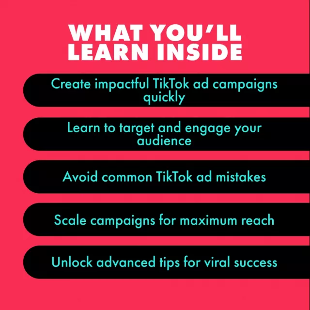 • Chapter 3: Optimizing and Scaling Your TikTok Ads – Track key metrics, avoid common mistakes, and scale your campaigns for maximum impact