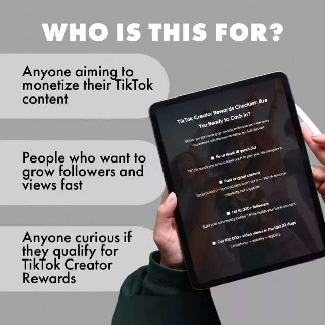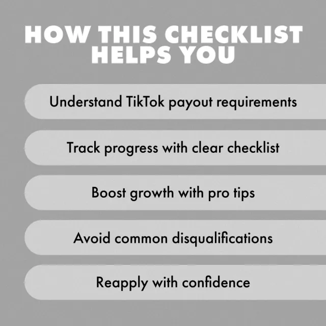 Unlike generic eBooks or blog posts, this checklist is laser-focused on the exact TikTok creator rewards program requirements. It’s designed for creators who want a quick, actionable reference they can use again and again. No fluff, no filler — just the essentials plus expert tips to keep you on the right track. Whether you’ve been rejected before or are just starting your TikTok growth journey, this guide helps you understand what TikTok looks for and how to stay eligible for payouts.