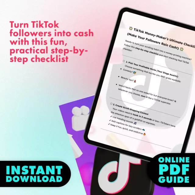 Ready to transform your TikTok into a money-making machine? The TikTok Money-Maker’s Ultimate Checklist (Make Your Followers Rain Cash!) is your all-in-one digital guide to mastering how to make money on TikTok. Whether you’re just starting out or already have a growing following, this checklist breaks down everything you need to turn likes, views, and shares into real income. Designed for creators who want step-by-step clarity, this guide shows you exactly what to do—from picking the right niche to monetizing like a pro. It’s simple, fun, and totally beginner-friendly.