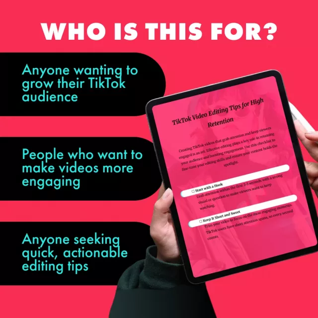 Don’t let your TikTok videos get lost in the scroll. Download the TikTok Video Editing Tips for High Retention checklist today and start creating content that captivates, converts, and grows your following. Your next viral video is only a download away!