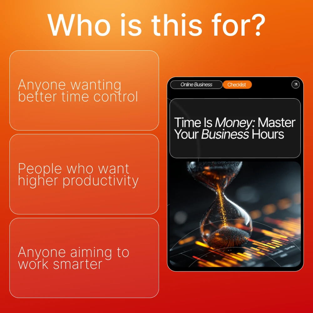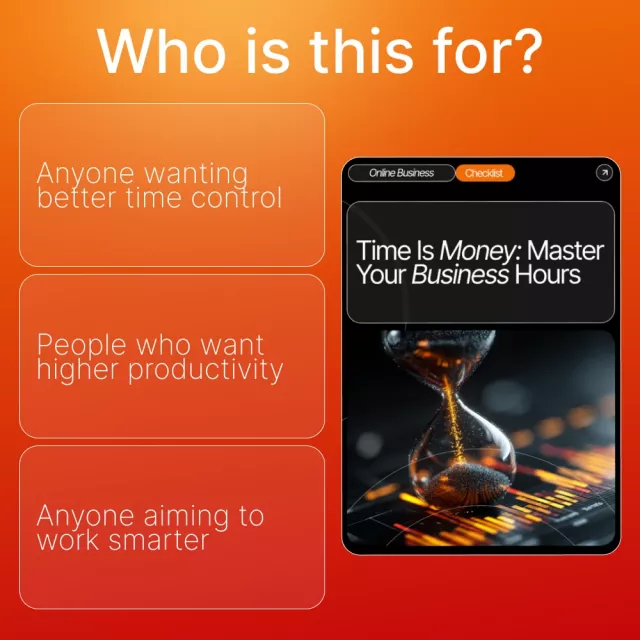 If you’ve ever felt like your days disappear but your to-do list doesn’t, this powerhouse checklist is your new secret weapon. Time Is Money: Master Your Business Hours is a clear, actionable digital guide designed to help entrepreneurs finally understand how to value your time as a business owner while optimizing every work hour for real results. This is more than a checklist—it’s a roadmap to reclaiming your schedule, boosting profitability, and working smarter instead of harder.