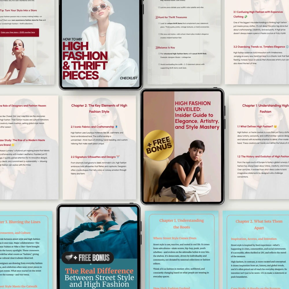 Ready to take your style to the next level? Download the “Timeless High Fashion Techniques and Tips” bundle today and discover the art of fashion mastery. With expert guides, insider tips, and practical checklists, you’ll have everything you need to elevate your wardrobe and your confidence. Don’t wait—download now and start creating your own fashion legacy!