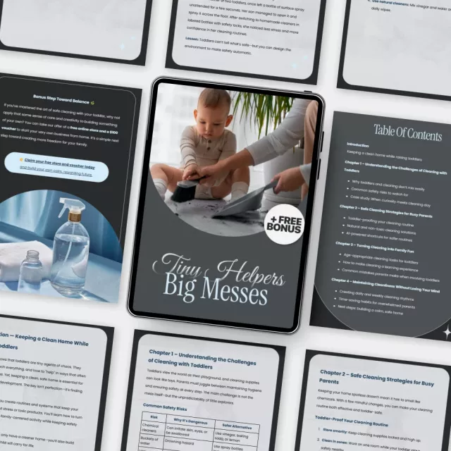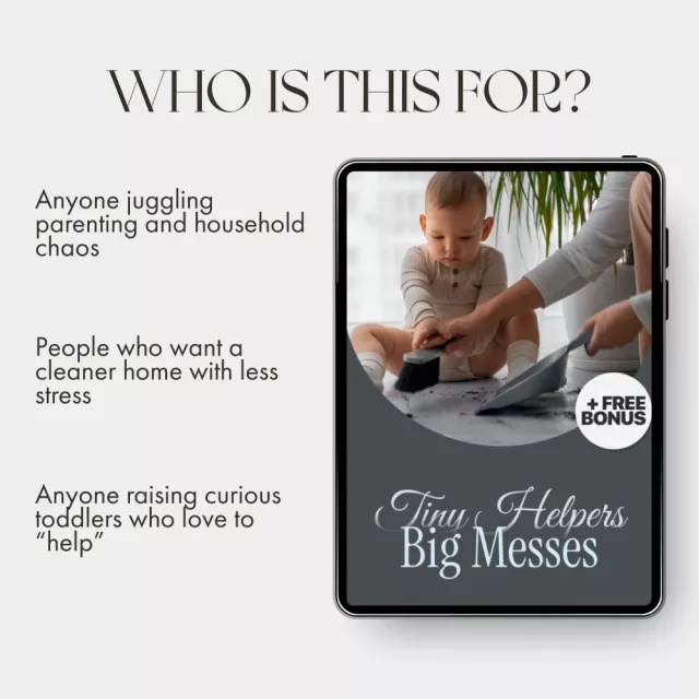 Don’t let toddler messes overwhelm your days. Download Tiny Helpers Big Messes today and discover how small changes can make a big difference in your home and family life. Make cleaning simple, safe, and even fun—because raising toddlers doesn’t have to mean living in chaos.