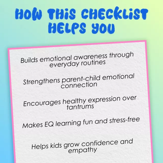 If you're unsure where or how to start teaching emotional intelligence—this checklist could very well be your answer. With its step-by-step approach, everything feels manageable even if you're not an expert. My child loves learning about feelings through play, stories, charts—all while building resilience one tiny step at a time!