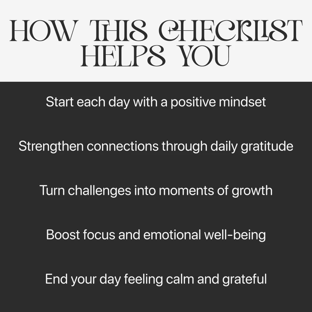 Small moments create big changes. Download Tiny Thanks, Big Impact: Your Daily Gratitude Routine now and discover how to practice gratitude every day with ease. Use this simple checklist to build a daily ritual that fills your heart, sharpens your focus, and brings more positivity into every corner of your life. Your brighter days start here—grab your instant download today!