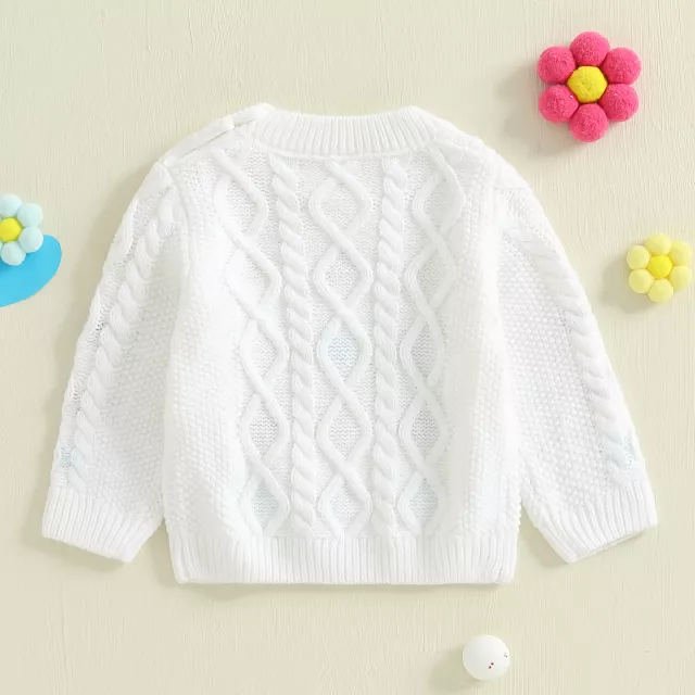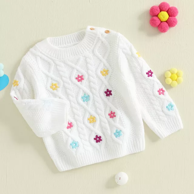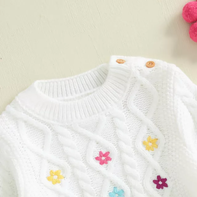 Toddler Baby Girls Knit Sweater with Flower Embroidery – Long Sleeve Pullover