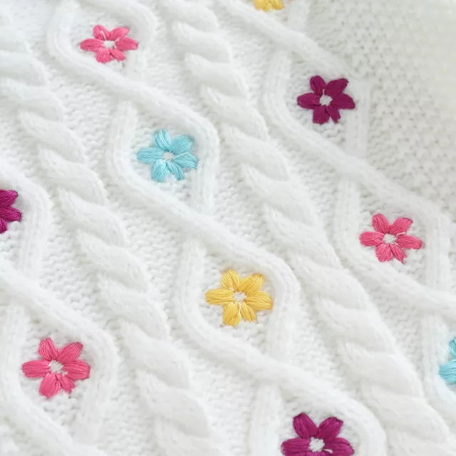 This knit sweater is more than just clothing – it’s a wardrobe essential for toddlers. It keeps your child cozy without feeling bulky, making it great for outings, family gatherings, or simply playing indoors. The timeless design ensures it pairs easily with jeans, leggings, or skirts, giving you endless styling options. Its embroidered flowers make it extra special, adding charm to a practical piece.