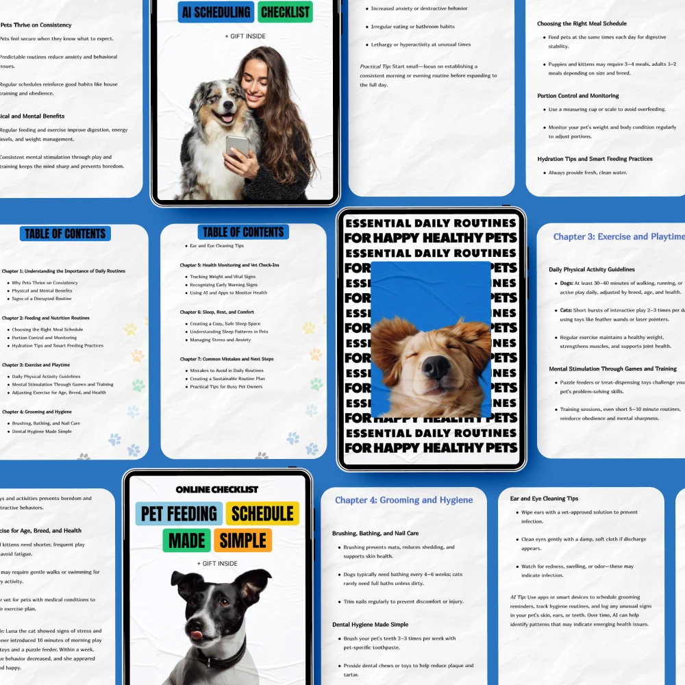 • Essential Daily Routines for Happy, Healthy Pets eBook: A detailed eBook with expert advice on crafting the perfect daily routine for your dog’s physical and mental well-being.