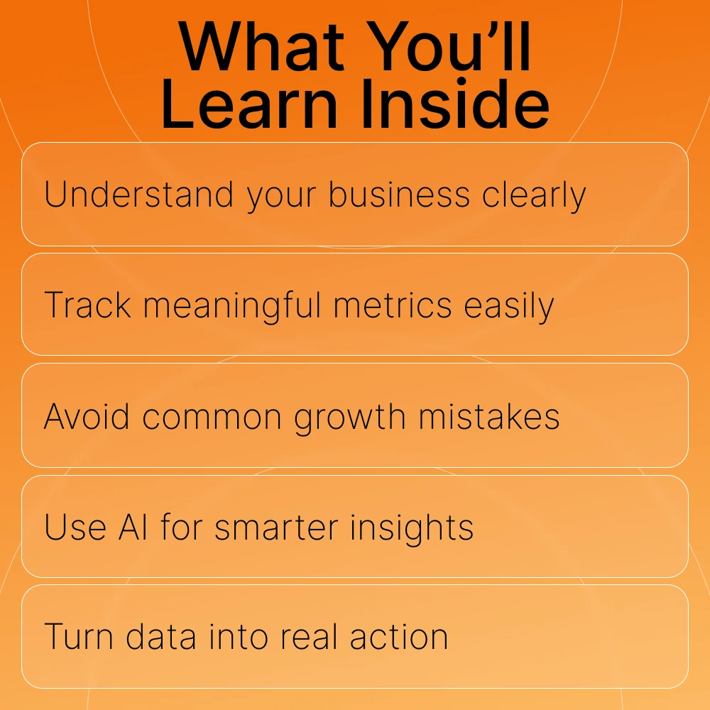 • Chapter 1: Why Tracking Growth Matters — Understand the big picture, metrics vs. intuition, and the role of AI in monitoring progress.