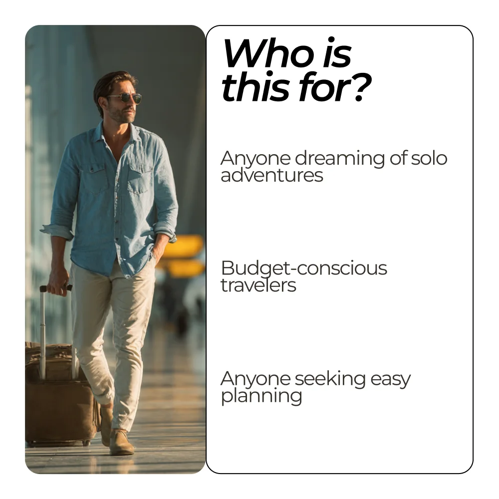 This bundle is perfect for anyone dreaming of solo travel on a budget—whether you’re a student, a young professional, or simply someone looking to explore the world independently without overspending. It’s ideal for beginners needing guidance and for seasoned travelers seeking fresh ideas and smarter planning tools.