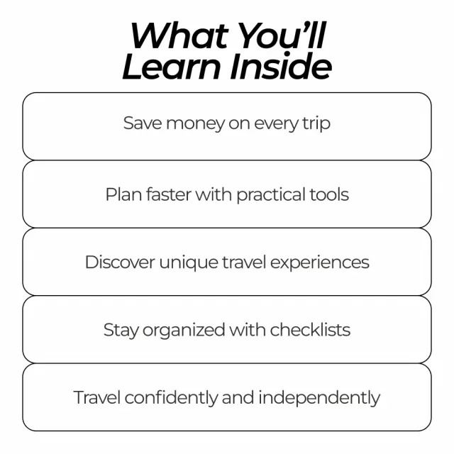 For anyone dreaming of exploring the world independently, this is your ticket! It offers practical tools that help you travel smarter without breaking the bank 💰