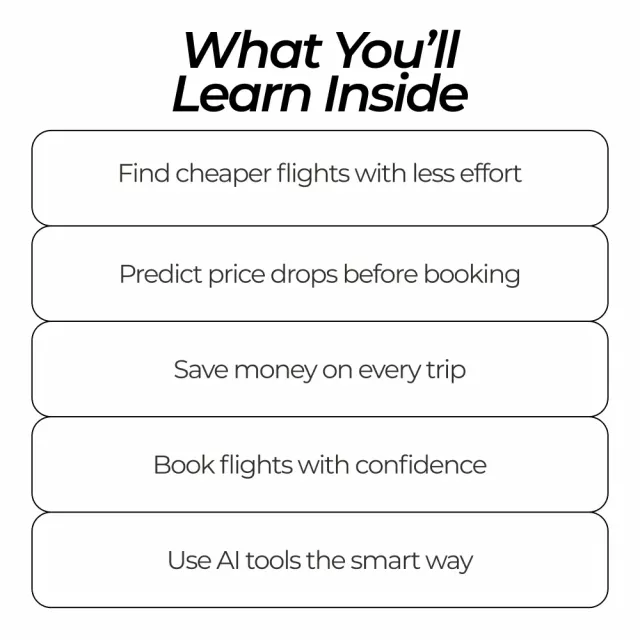 Unlike generic flight deal tips, this bundle focuses on how AI actually predicts price movements and finds patterns humans miss. You’re not just told when to book—you’ll understand why. That knowledge puts you in control, trip after trip.