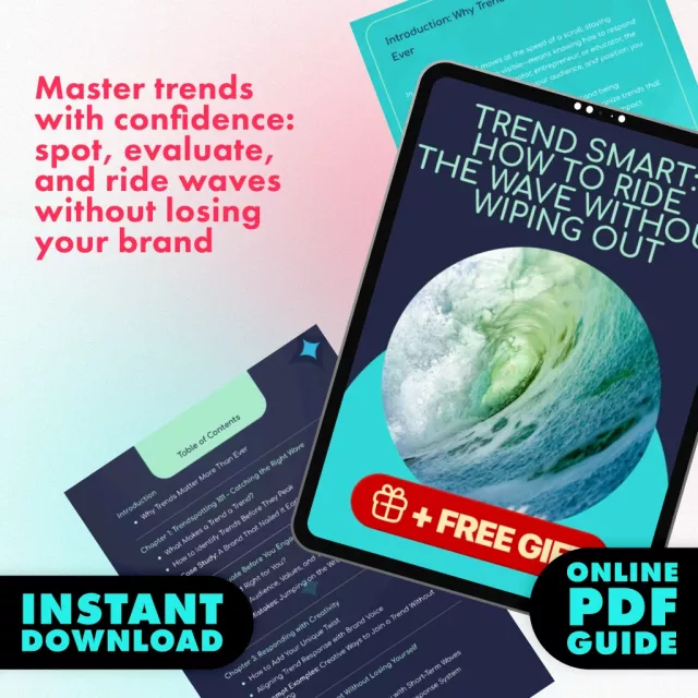 Trends move fast—and if you’re not prepared, they can pass you by or leave you scrambling. Trend Smart: How to Ride the Wave Without Wiping Out is your practical guide to spotting, evaluating, and responding to trends in a way that keeps you relevant without losing your unique voice. Designed for entrepreneurs, content creators, marketers, and brand owners, this digital download shows you the best way to respond to trends so you can ride the wave with confidence, creativity, and strategy.