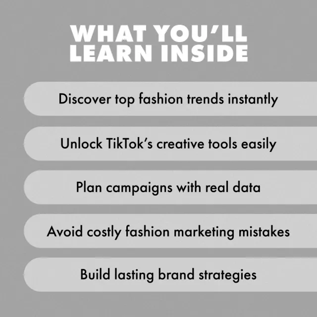 • Save Time: Skip the trial-and-error process with proven strategies that work for fashion brands on TikTok
