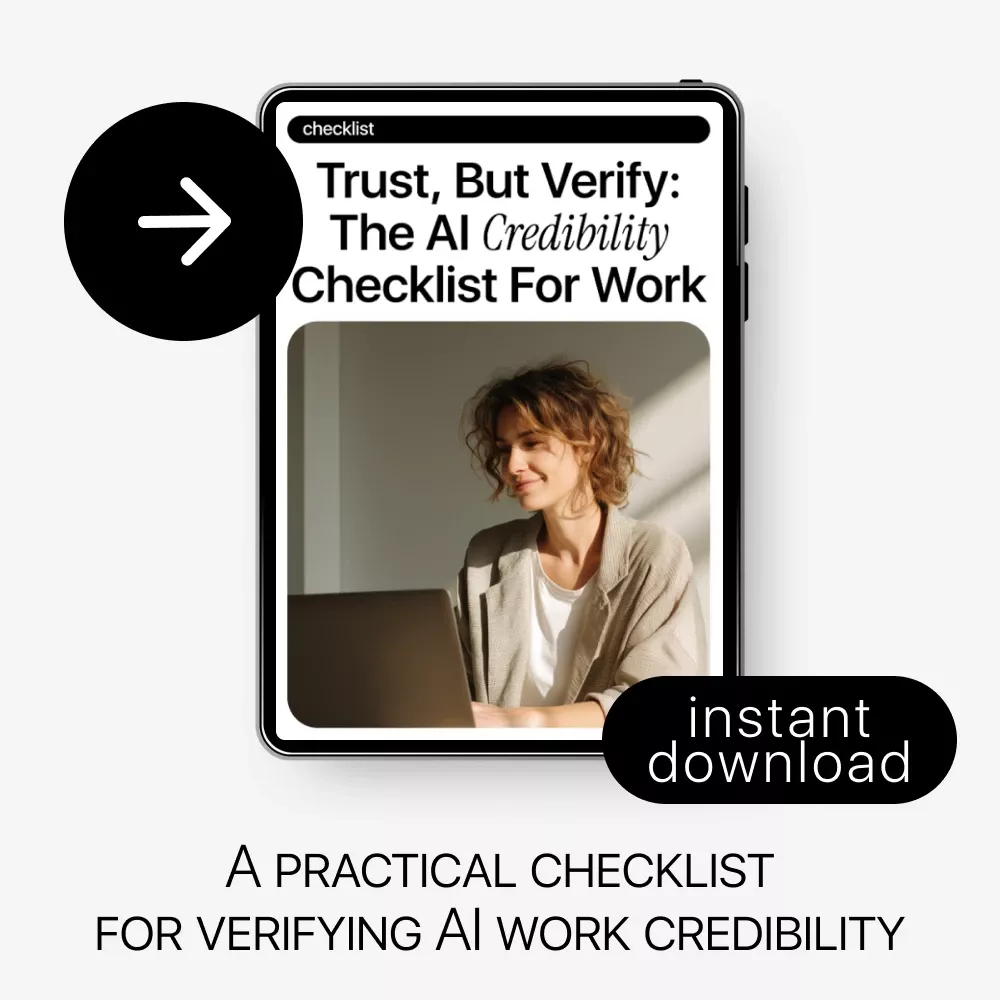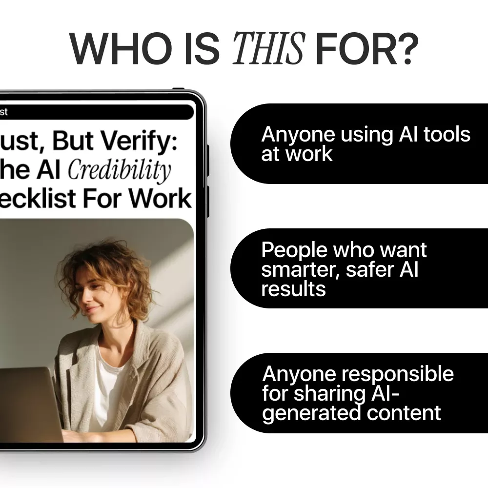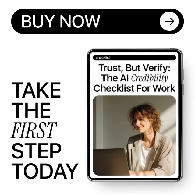 Unlike generic AI tips, Trust, But Verify: The AI Credibility Checklist for Work focuses on accountability. It treats AI like a junior assistant—not an authority—and helps you own the final result. It’s practical, role-aware, and built for real workplace decisions, not theory.