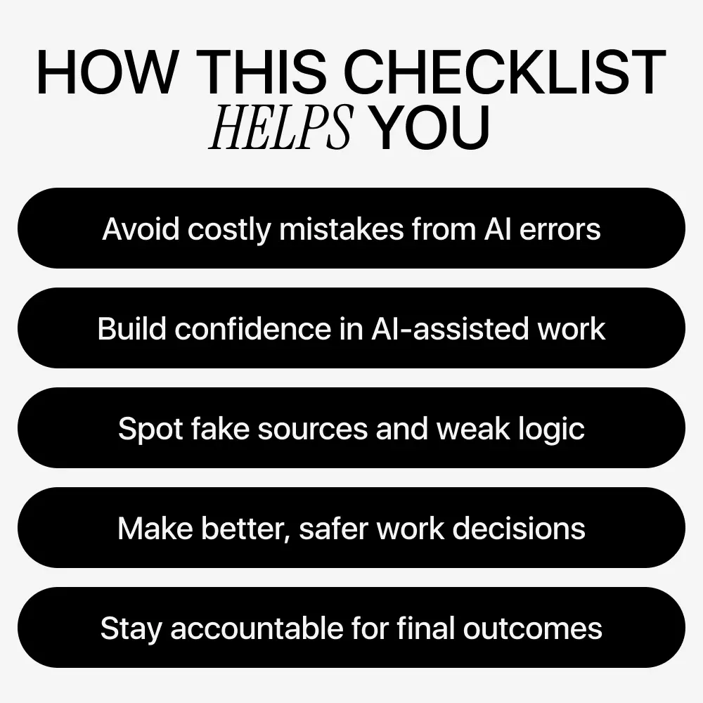 • A clear, structured AI Credibility Checklist built for real work scenarios