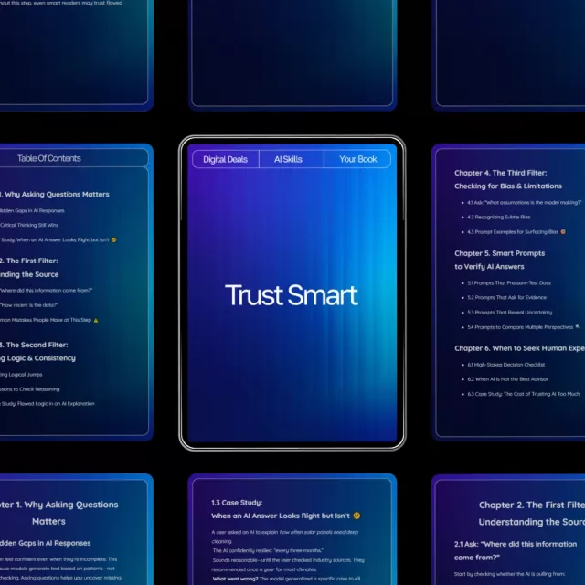 Download Trust Smart now and learn exactly what to ask before trusting ai answers. Strengthen your judgment, improve your AI conversations, and make better decisions today.