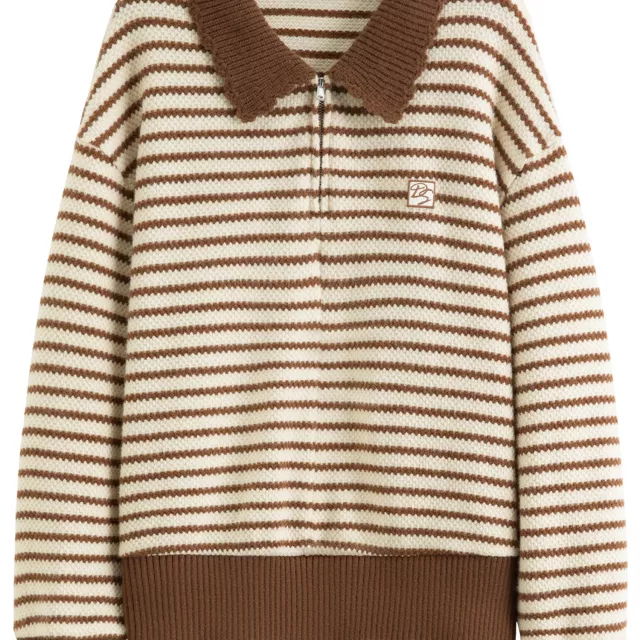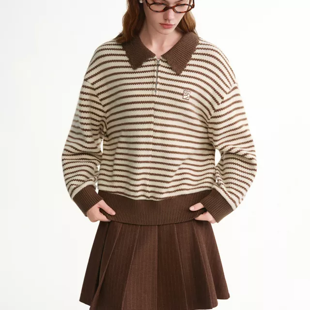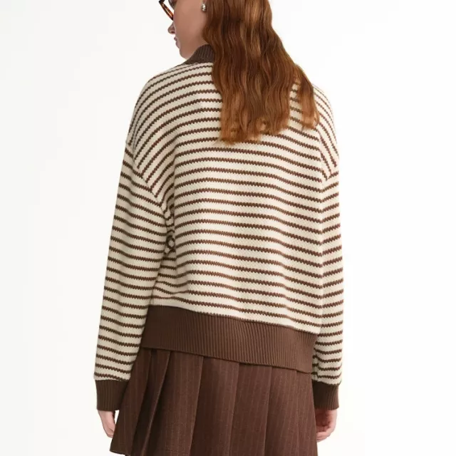 Its loose fit and long sleeves give you room to layer while maintaining a casual, laid-back silhouette. The turn-down collar adds a refined touch, and the contrast striped pattern brings a subtle retro vibe, giving you a sweet and age-reducing Korean-style look. Whether you’re heading to class, meeting friends for coffee, or enjoying a cozy day at home, this sweater is versatile enough to match any casual setting.