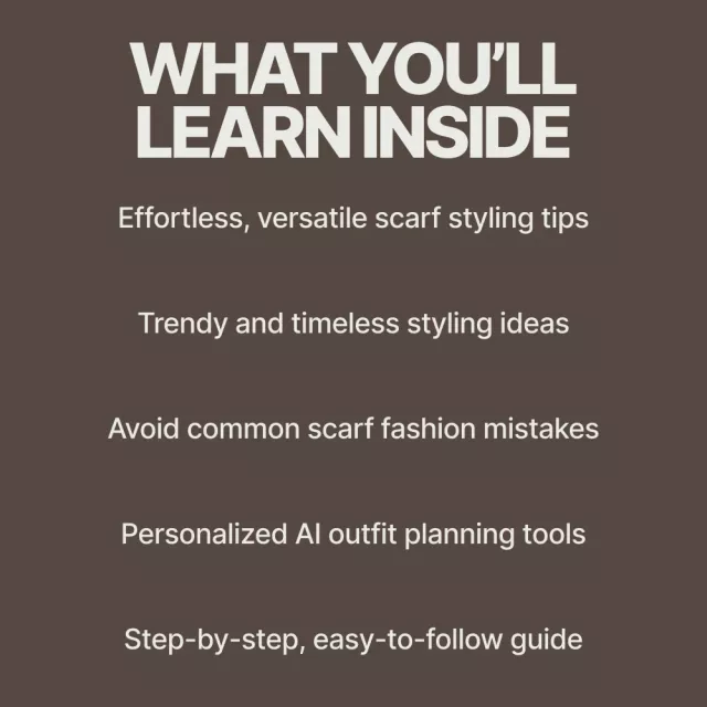Our guide is packed with actionable tips, timeless techniques, and modern trends to help you make the most of scarves in your wardrobe. Here’s a sneak peek at what you’ll find: