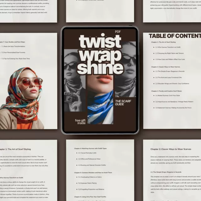 Don’t let your scarves gather dust in the back of your closet—take control of your style with “Twist, Wrap, Shine: The Scarf Guide.” Download now and start mastering the art of scarf styling today!