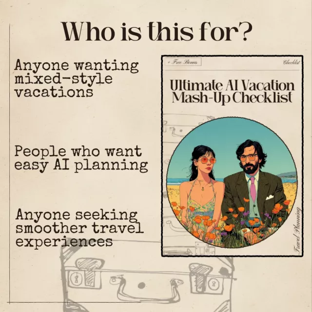 Ready to plan a vacation that blends every travel vibe you love—without the overwhelm? Download the Ultimate AI Vacation Mash-Up Checklist today and start crafting a smarter, more exciting, fully customized adventure your future self will thank you for.