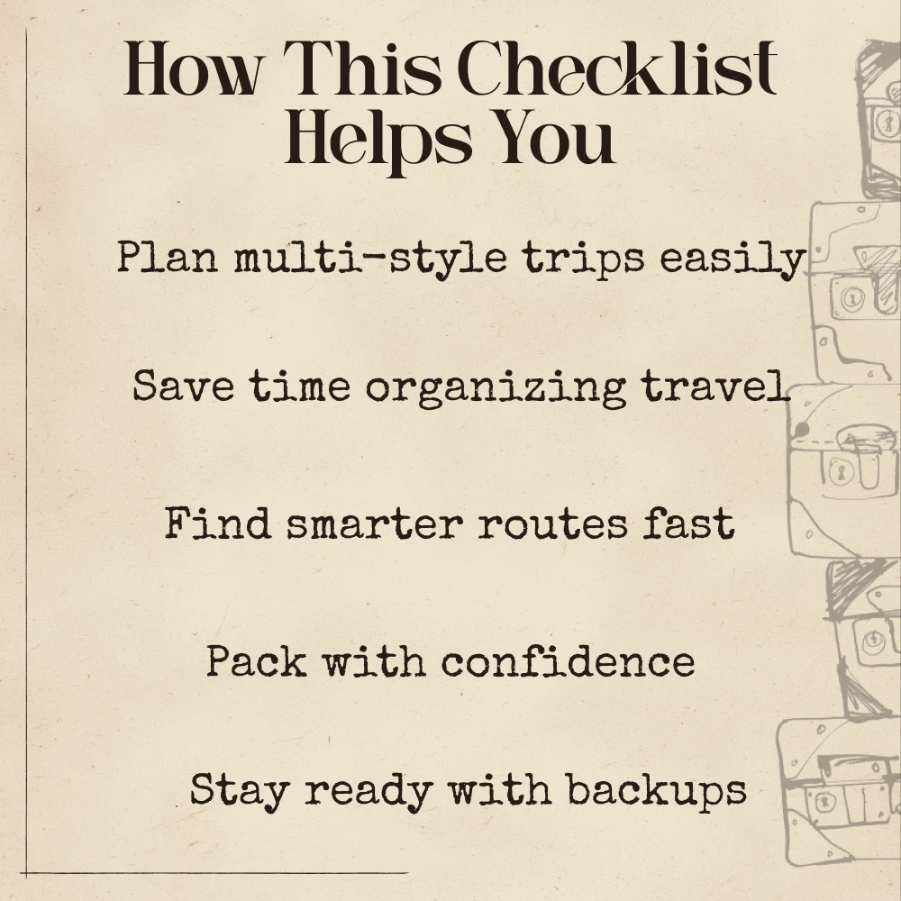 This digital guide is perfect for travelers who want more than a single-theme trip, busy planners who love efficiency, digital nomads blending work and exploration, families seeking variety, and creators or entrepreneurs looking to turn travel ideas into income. If you want a fun, easy method to combine multiple trip styles using AI, this checklist is made for you.