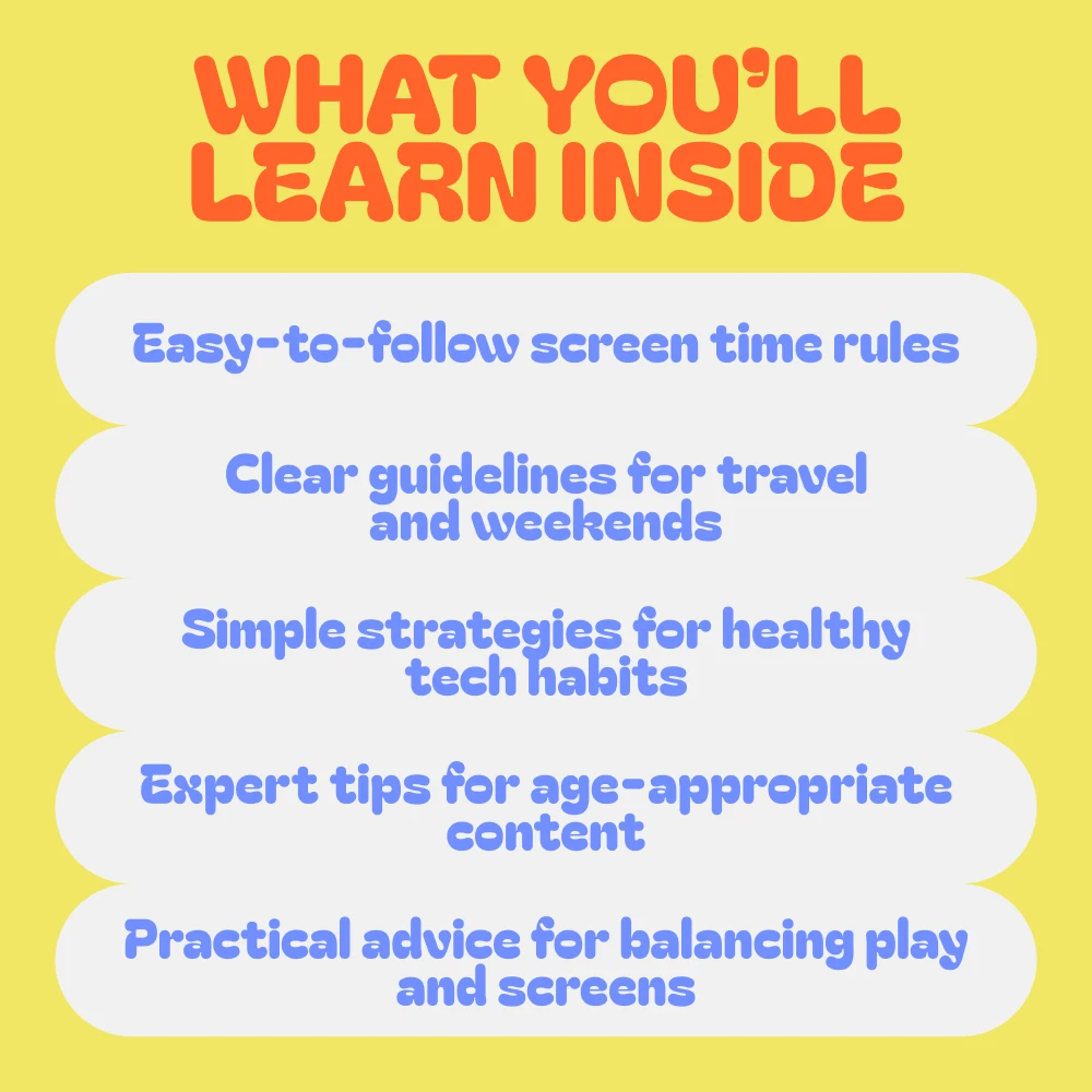 • Practical, Easy-to-Use Checklists: Clear, actionable steps for setting screen time rules and limits for kids.
