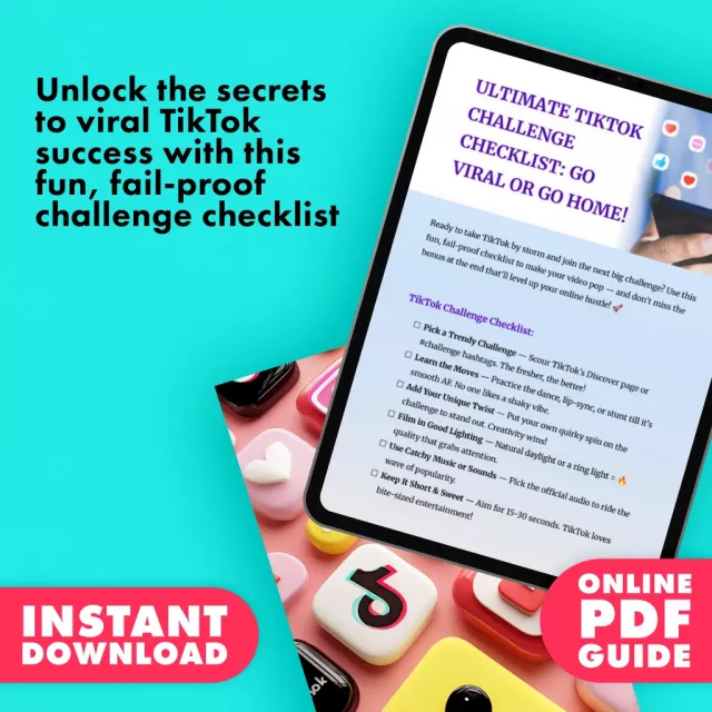 Ready to take the TikTok world by storm? Download the Ultimate TikTok Challenge Checklist: Go Viral or Go Home! today and start creating videos that get noticed. Don’t let your next challenge pass you by — the world is waiting to see what you can do!