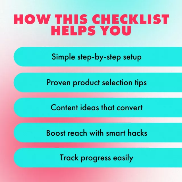 This digital checklist is perfect for anyone who wants to learn how to become a TikTok Shop affiliate—whether you’re a beginner creator, side hustler, or small business owner ready to tap into TikTok’s viral power. It’s especially designed for those who want a clear, easy-to-follow roadmap that’s fun and motivating.