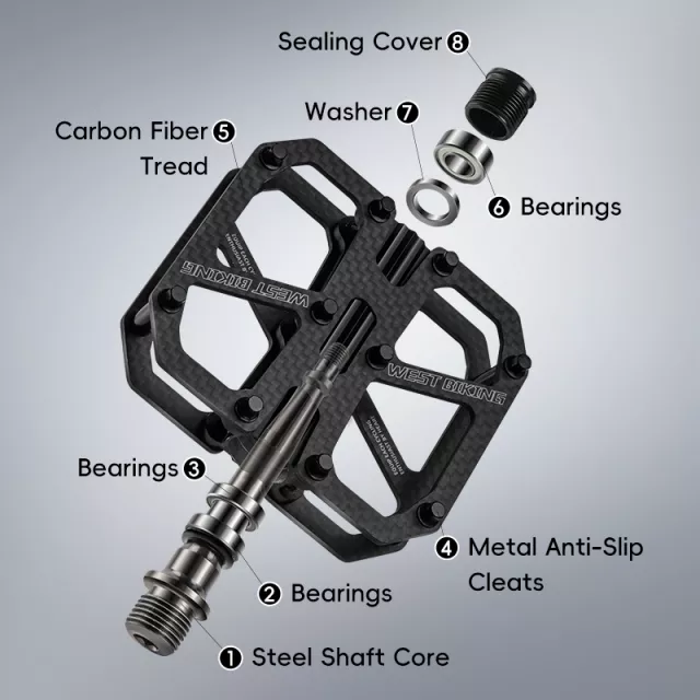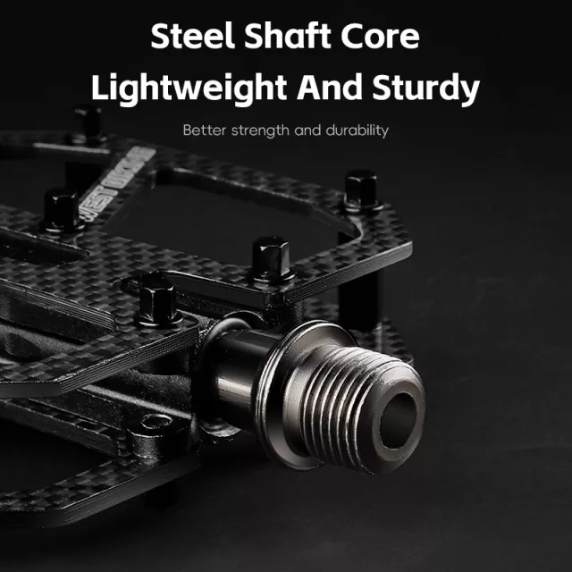 Constructed from T700 carbon fiber, these pedals are exceptionally strong while remaining ultralight. The steel shaft core adds extra durability and stability, ensuring that your pedals withstand the rigors of intense cycling and off-road adventures without compromising on weight.