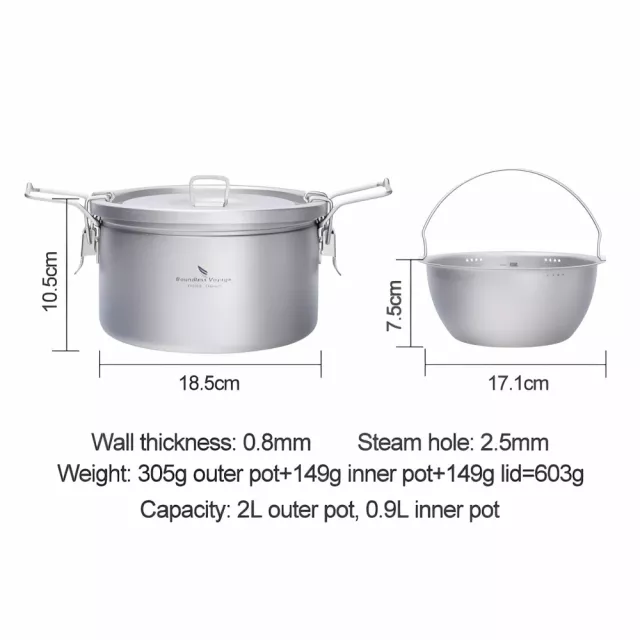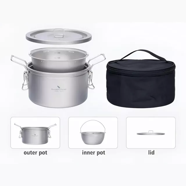 With a compact and lightweight design weighing just over 1.5 pounds for the full set, this pot is perfect for solo trips or small groups of 1 to 3 people. The 2-liter outer pot and 0.95-liter inner pot provide ample space to cook hearty meals, while the deepened inner design ensures your food cooks evenly every time.