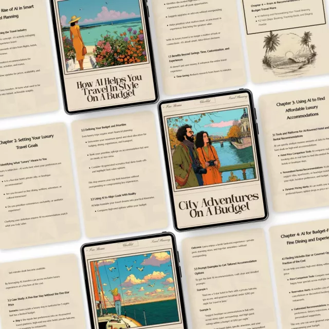 This bundle changed how I plan trips. Instead of hopping between websites, I use AI with the provided frameworks and save both time and money. The luxury-on-a-budget strategies are clever. I just wish there were a few more real-life case studies to show complete trip breakdowns from start to finish.