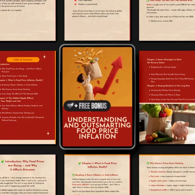 Unlike generic budgeting eBooks, this guide focuses specifically on food price inflation. It blends expert-level insight with relatable examples, simple language, and ready-to-use tools that make saving money easier than ever. You’ll not only learn what’s happening—you’ll learn exactly what to do about it.
