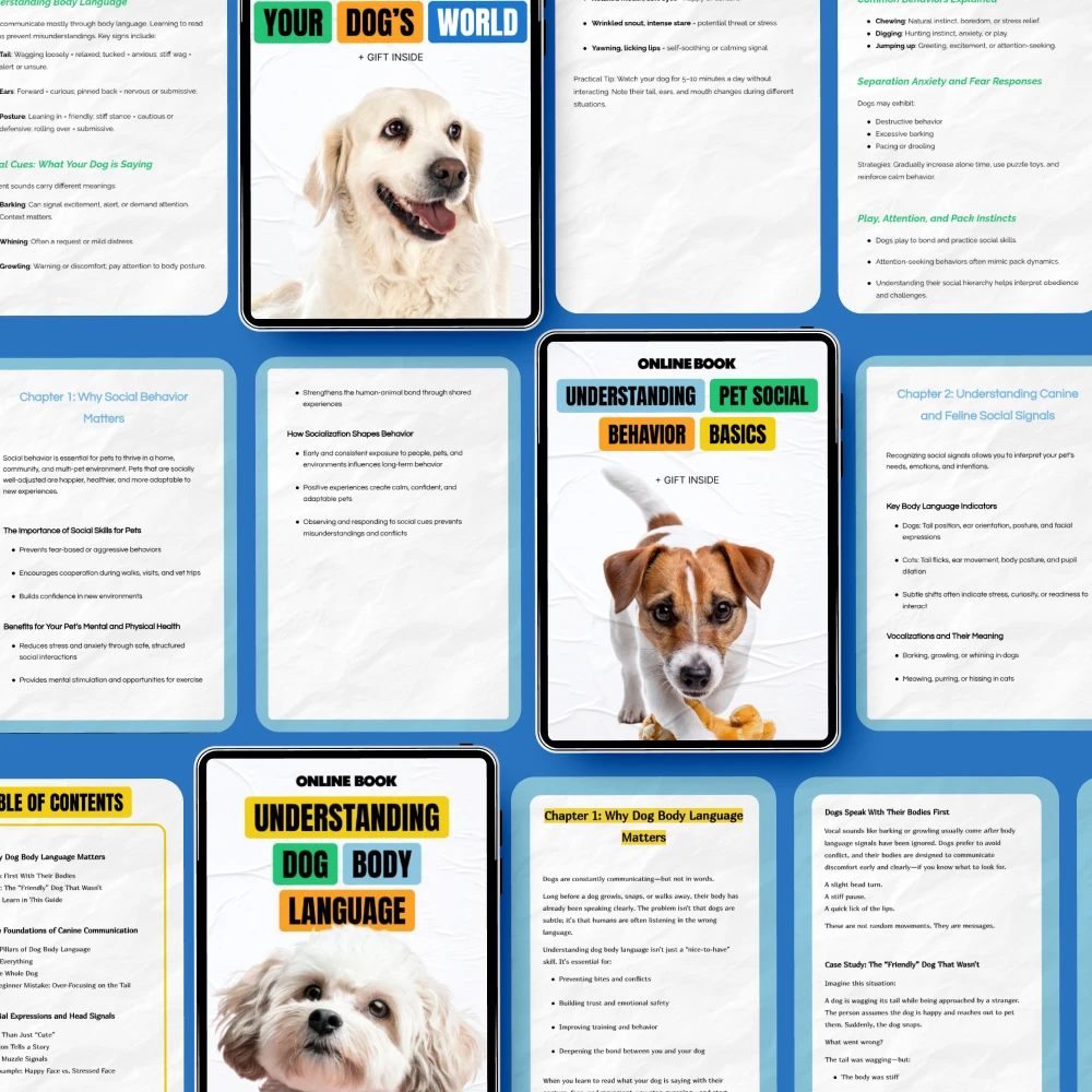 • How to Read Your Pet’s Body Signals – This eBook dives into understanding the subtle body signals your dog sends, from tail wags to posture.