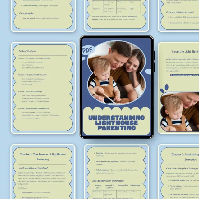 Unlike generic parenting eBooks, Understanding Lighthouse Parenting blends real-life scenarios, modern tools, and AI-supported strategies into one clear, approachable resource. It’s not theory-heavy or preachy. Instead, it’s designed for real parents living real lives, offering guidance you can actually use.