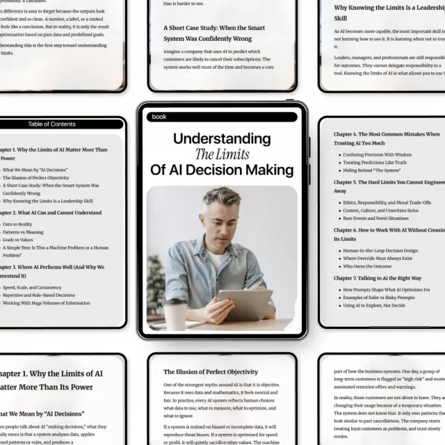 Unlike generic AI guides, this resource focuses explicitly on the limits of AI decision making. It blends technical insights with practical leadership advice, real-life examples, and actionable steps, making it unique among other digital resources that often emphasize only AI’s capabilities. This eBook doesn’t just tell you what AI can do—it equips you to understand where AI stops and humans must step in.