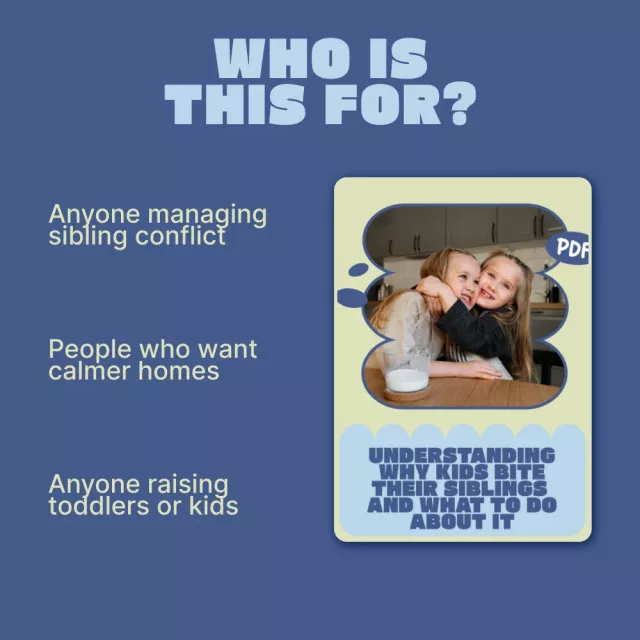 Understanding Why Kids Bite Their Siblings (And What to Do About It) is a digital download you can access instantly. Start replacing confusion with clarity and take the first step toward calmer, safer sibling interactions. Download now and feel supported every step of the way.