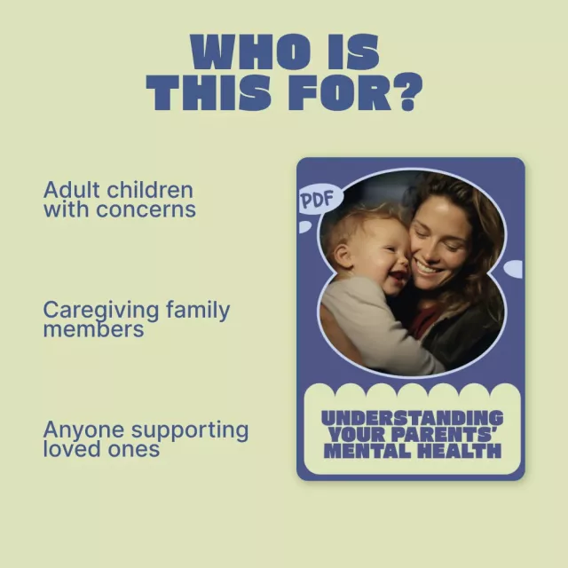 If you’ve ever wondered whether you’re doing enough—or doing the right thing—this guide is for you. Understanding Your Parents’ Mental Health empowers you with knowledge, tools, and reassurance so you can show up with confidence and compassion. Download your copy today and start supporting your parents’ mental well-being with clarity and care.