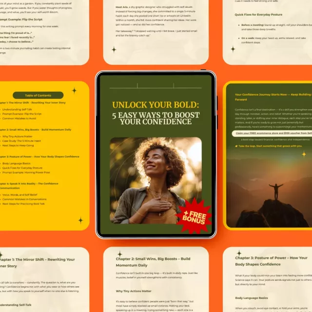 Unlock Your Bold: 5 Easy Ways to Boost Your Confidence stands out because it’s simple, actionable, and human—no fluff, no pressure. Download this digital guide today and start practicing confidence in a way that feels natural, supportive, and empowering.