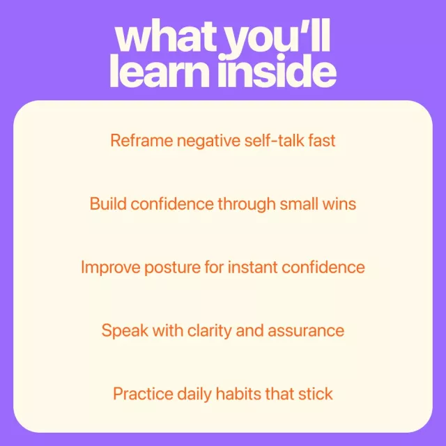 • A clear, easy-to-follow framework focused on 5 ways to boost your confidence through mindset, body language, habits, and communication
